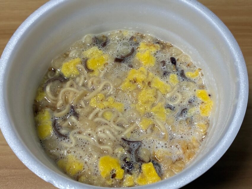 私の予想はブタメンプラスチキンラーメン味ということだったので半分正解?ってことですかね。