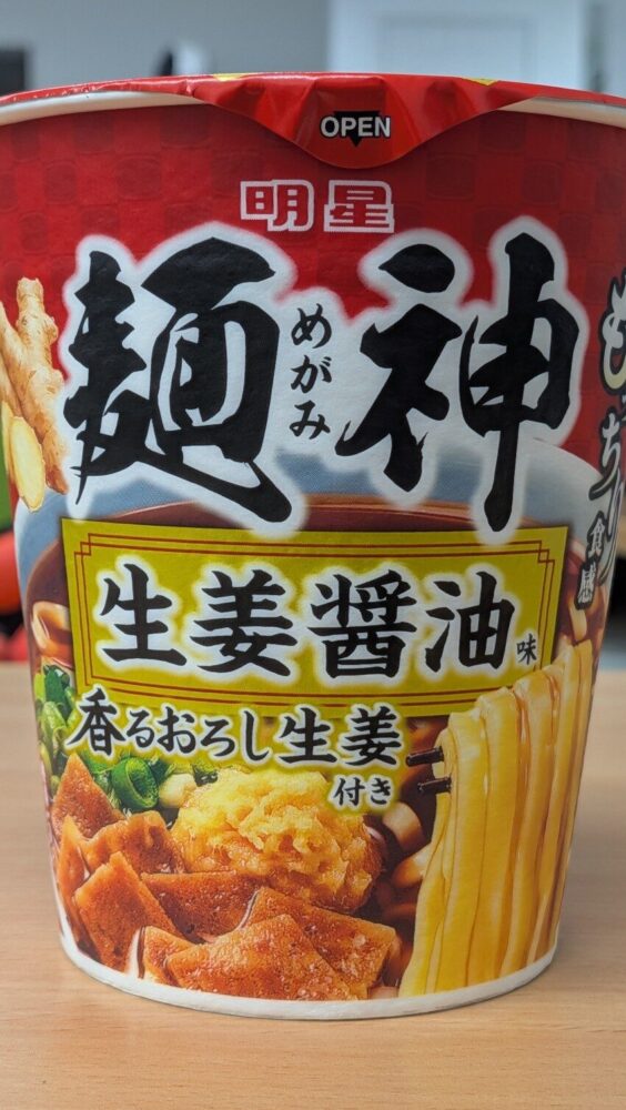 今回食べたのは明星の麺神 生姜醤油味です。 食べた感想としては麺神シリーズだけあって麺はもっちりしていて抜群に美味しいですね。スープが醤油の美味しさと生姜のキレの良さが絶妙なバランス。これは下手なラーメン屋で食べるよりも美味しく満足度が高いですね。 かなりおすすめのカップラーメンです。